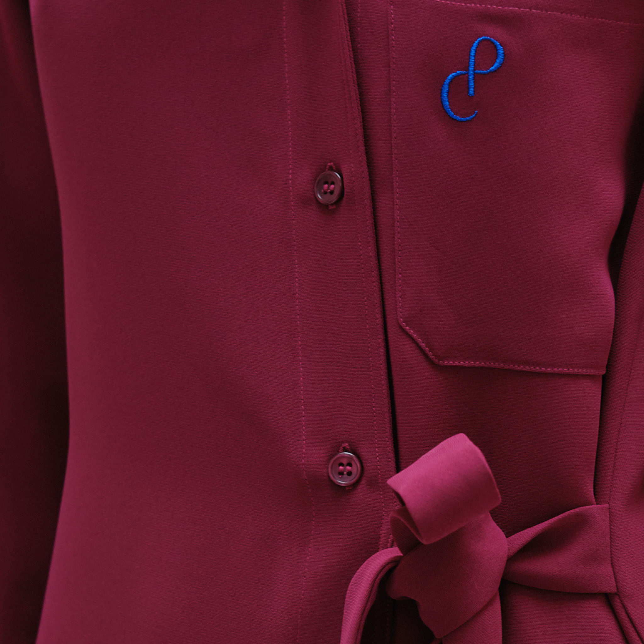 Robe-chemise en thym, ceinturée, avec une poche plaquée et brodée.